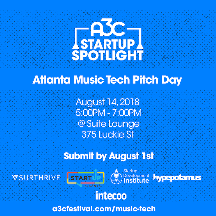 The Atlanta Music Tech Pitch Day will take place before the August edition of A3C Social Club on August 14 from 5-7 p.m. at Suite Lounge. Spectators and engaged participants are welcome.