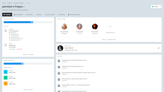 Jammber is a platform that manages the entire music production process, keeping track of everyone involved, making sure the work flows, letting collaborators sign off on important steps digitally, and helping labels and artists file forms correctly in minutes, not months.