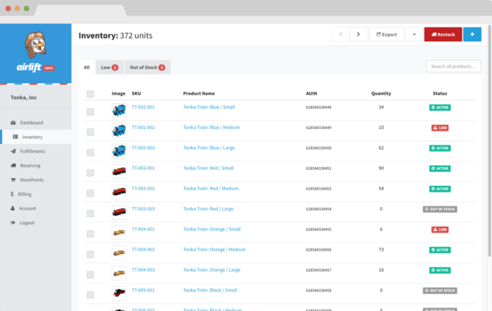 To get on the platform, you create a shipment notice with your inventory and send it to Airlift to store in their warehouse. If you're in their first market of Atlanta, they can even swing by and pick it up. Airlift takes care of all the shipment logistics from that point.