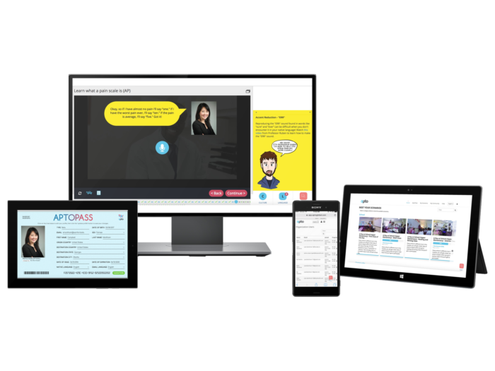 Babbel, Rosetta Stone, Cambly, DuoLingo, Berlitz. Apto is the only online cultural-linguistic simulator or ex-pat "survival kit" with non-staged authentic video footage and locale-tagging technology. In other words, learners choose their origin country, destination state and city — the content and learning experience populate accordingly. Dominated by interactivity and featuring a variety of regional dialects, with international accents for listening comprehension, users learn to speak with confidence.