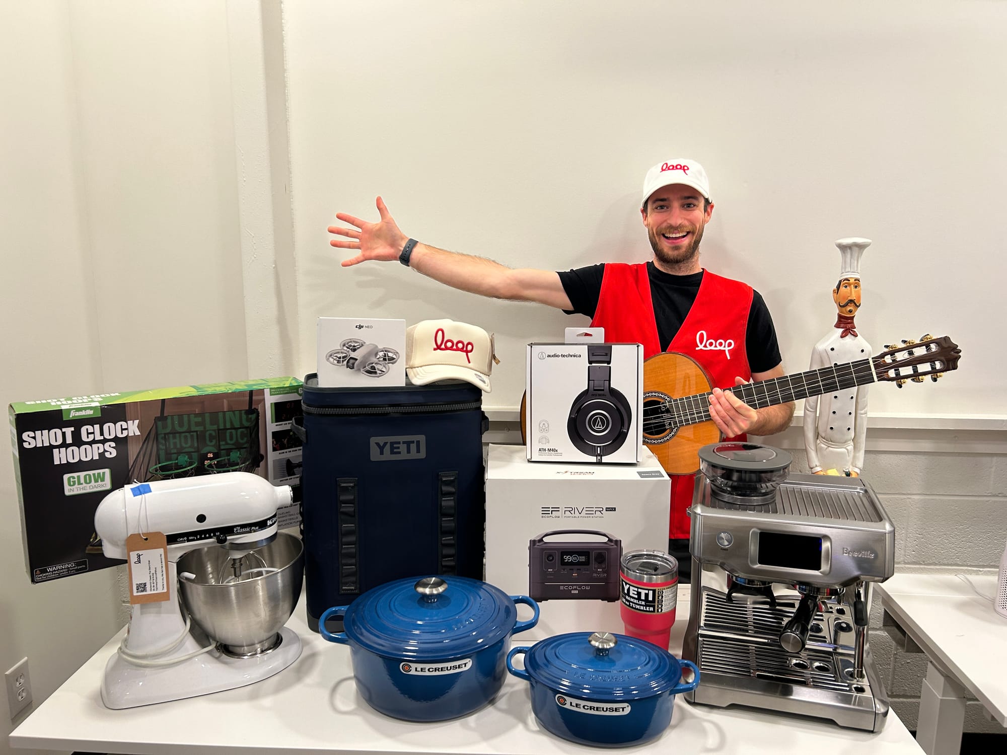 Once an item is picked up, the Loop team gets to work marketing and selling that item to others nearby. The most common items are household goods — including electronics, gaming, outdoor gear, kitchen appliances, fitness equipment, tools, travel, small pieces of furniture, musical instruments, and kids toys — that one person can carry and are worth $50 or more.