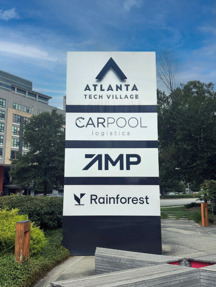 Rainforest’s logo is on the Atlanta Tech Village Buckhead’s marquee signage, a sign (quite literally) of its headcount growth.