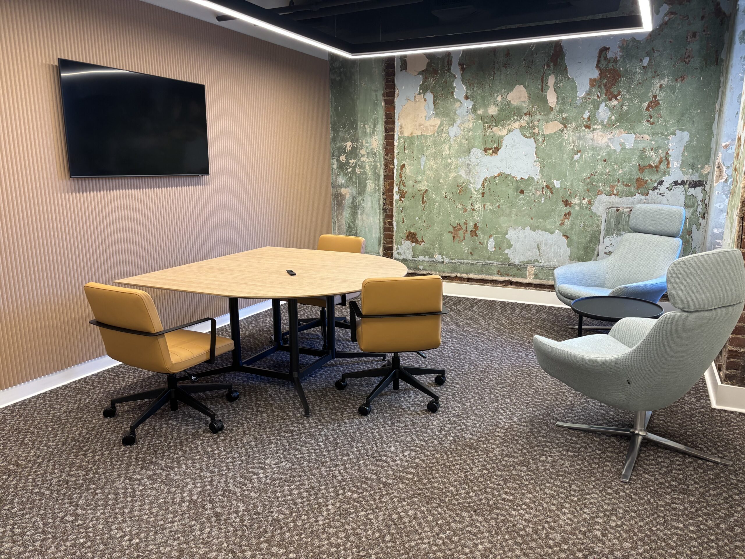 Similar to ATV’s Buckhead location, members can get singular office spaces and have access to conference rooms and community spaces to help grow their teams and their businesses. But there is a distinct flair to ATV’s Sylvan location. 100-year-old tile segments are kept and preserved, and odes to Atlanta’s history can be seen in the details surrounding the sleek new coworking spaces.