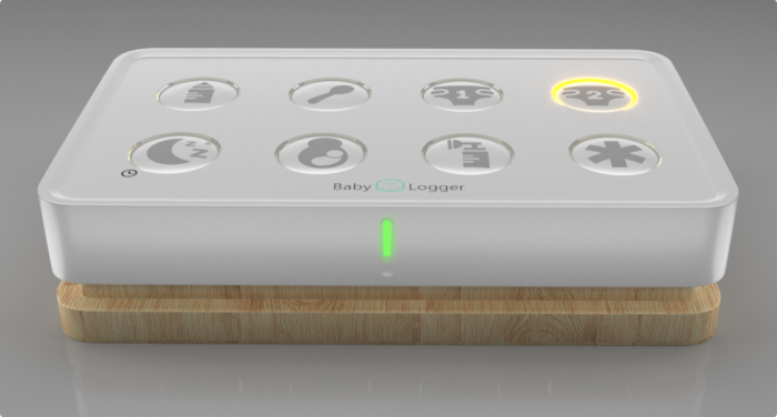 The hardware can be used by any of the baby's caretakers — parents, family members, or professional caretakers — to log feedings, diaper changes, naps, etc. with the push of a button. Parents can then keep track of their child's day while at work as the buttons sync with the app.