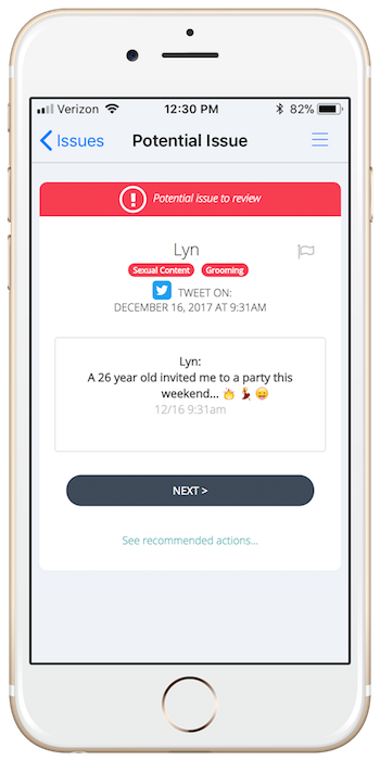 potentially concerning safety issues to alert parents. Bark differentiates itself from other cyber-safety platforms because it only alerts parents when it identifies a potential issue, thus minimizing invasiveness and preserving the child’s privacy.