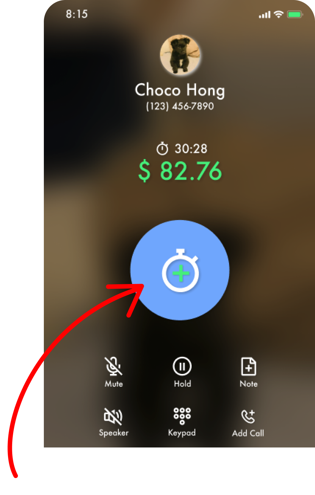 Within the app, users set a rate and push the blue client button to start recording.