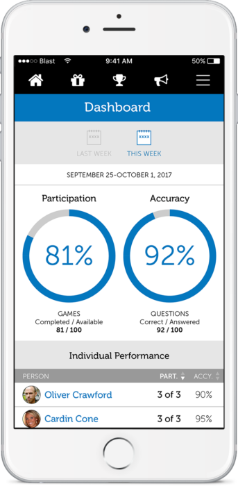The idea for Blast started with a corporate trivia game that helped assess and reinforce essential information. From there, we looked at our collective experiences in the workplace and saw a real problem with not only getting information to the front line, but keeping them engaged to improve long-term organizational performance. We are
