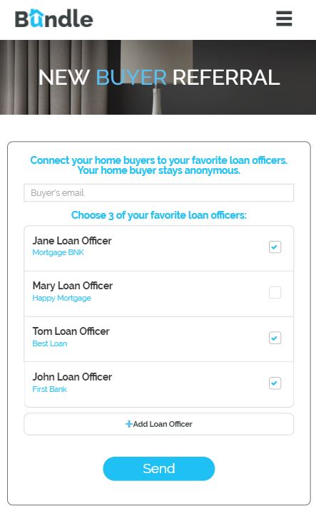 The platform allows them to interact anonymously and message with several loan officers at once to discuss details on their personalized bids. Once they're happy with a quote and loan officer, the home buyer can reach out directly when they're ready.