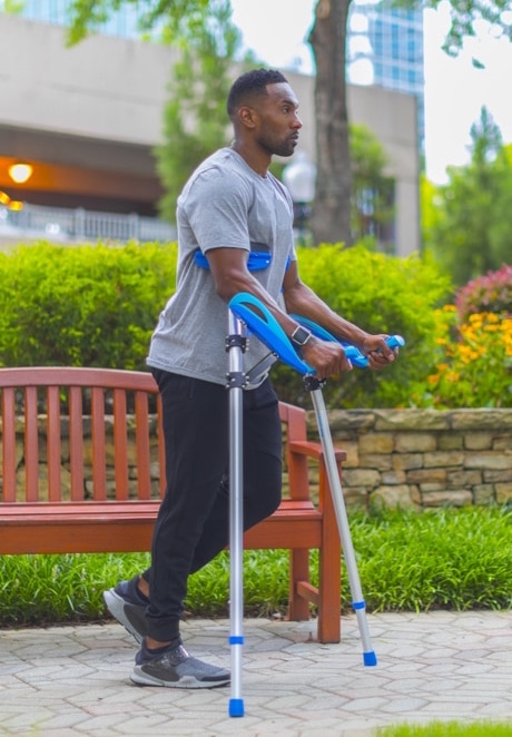 The crutches use a patented system to provide improved forearm support and take pressure off of the user’s wrist and