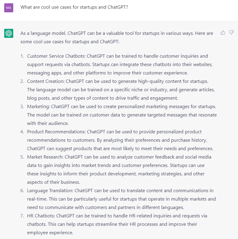 We went right to the source to hear how ChatGPT thinks it can help startups. Here’s what it thinks: