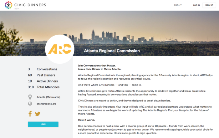 Civic Dinners will always call Atlanta home, especially since we have designed the platform for and with the Atlanta Regional Commission over the past few years. What better way to test the idea and the platform than launch a conversation in a far away remote place, without us being there? It would also be a great way to pressure test the new platform, identify bugs, and rapidly prototype new features.