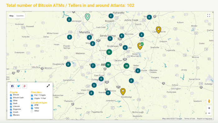 As bitcoin prices fluctuate near record highs and adoption picks up, the world’s largest bitcoin ATM provider is bringing its largest installation to-date to Georgia. Coinsource has placed 18 of its bitcoin ATMs in Atlanta which, along with 2 in Athens, add 20 new units to Georgia's current bitcoin ATM network.