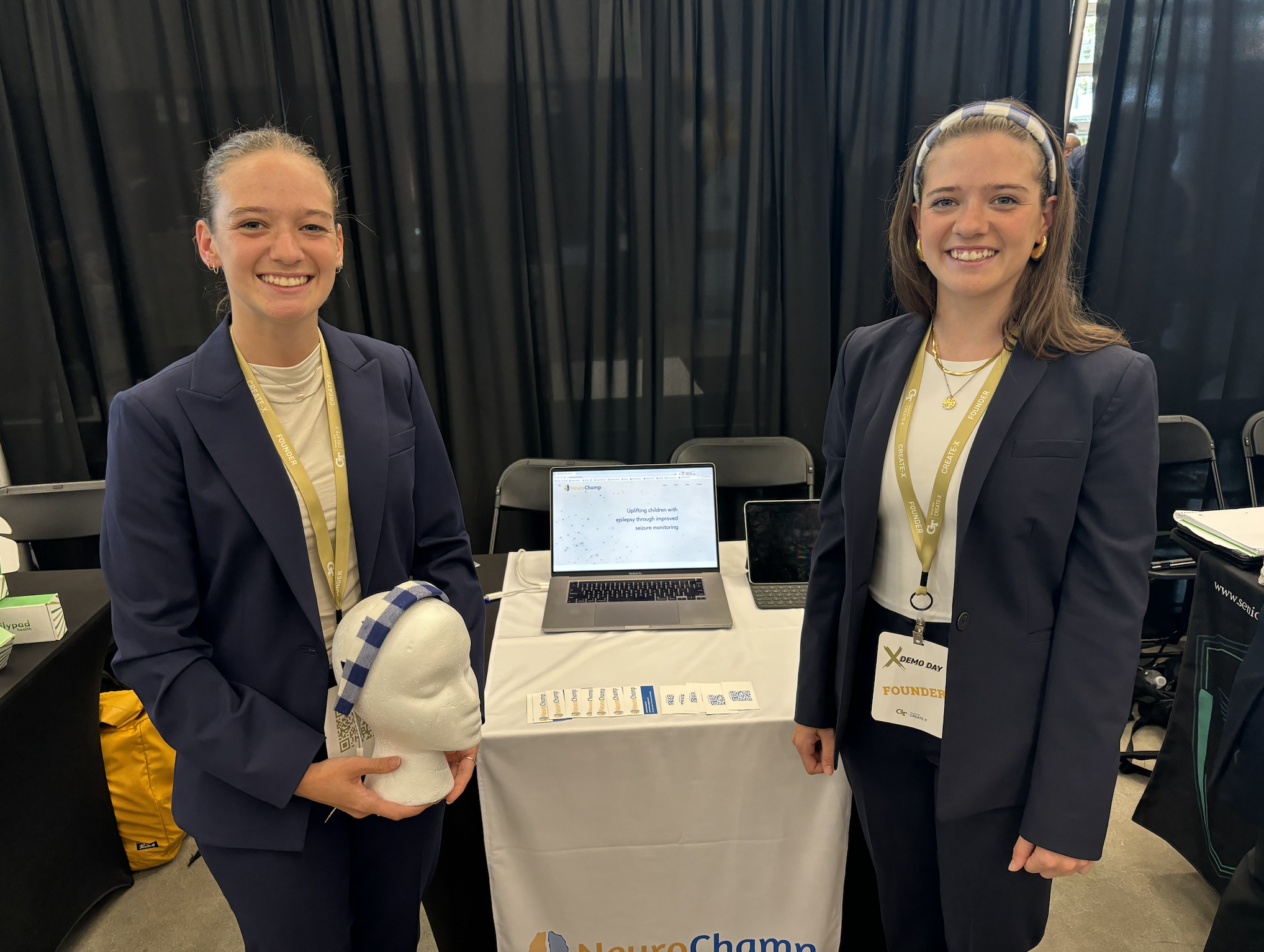 Developed by a team of biomedical and mechanical engineering seniors, NeuroChamp is a daily-wearable headband that continuously monitors pediatric seizures outside hospital settings, enabling more informed treatment for children with epilepsy. The team's headband can be seen above. Watch the NeuroChamp video pitch here.
