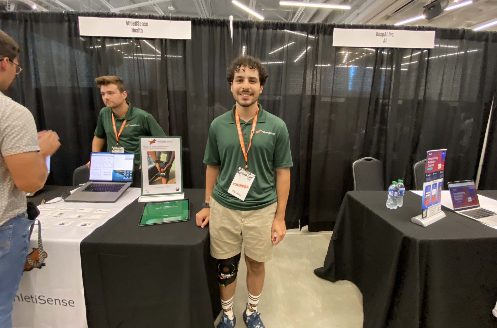 The AthletiSense team is also working on the sports and fitness world. Over the summer they built a wearable device that tracks injury recovery in athletes. Watch their full pitch here.