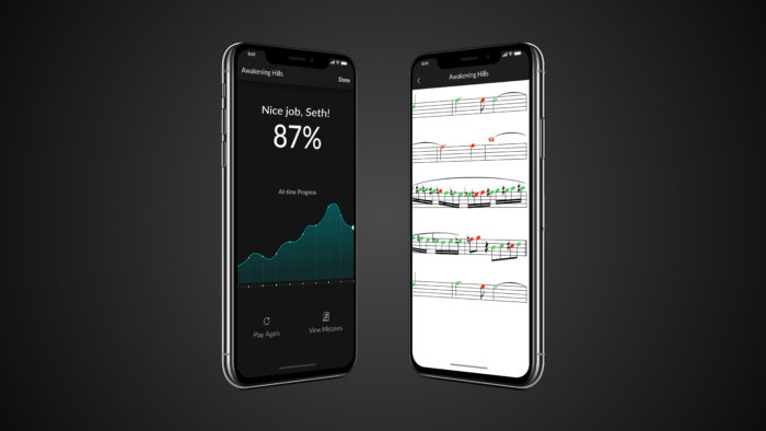 Radman describes Crescendo as “like Guitar Hero, but for real instruments.” As he explains, Crescendo’s music assessment engine uses both monophonic and polyphonic pitch detection to analyze harmonic frequencies from the notes musicians play. In other words, a musician plays a piece and Crescendo uses its AI-powered musical expertise to provide feedback and point out mistakes.