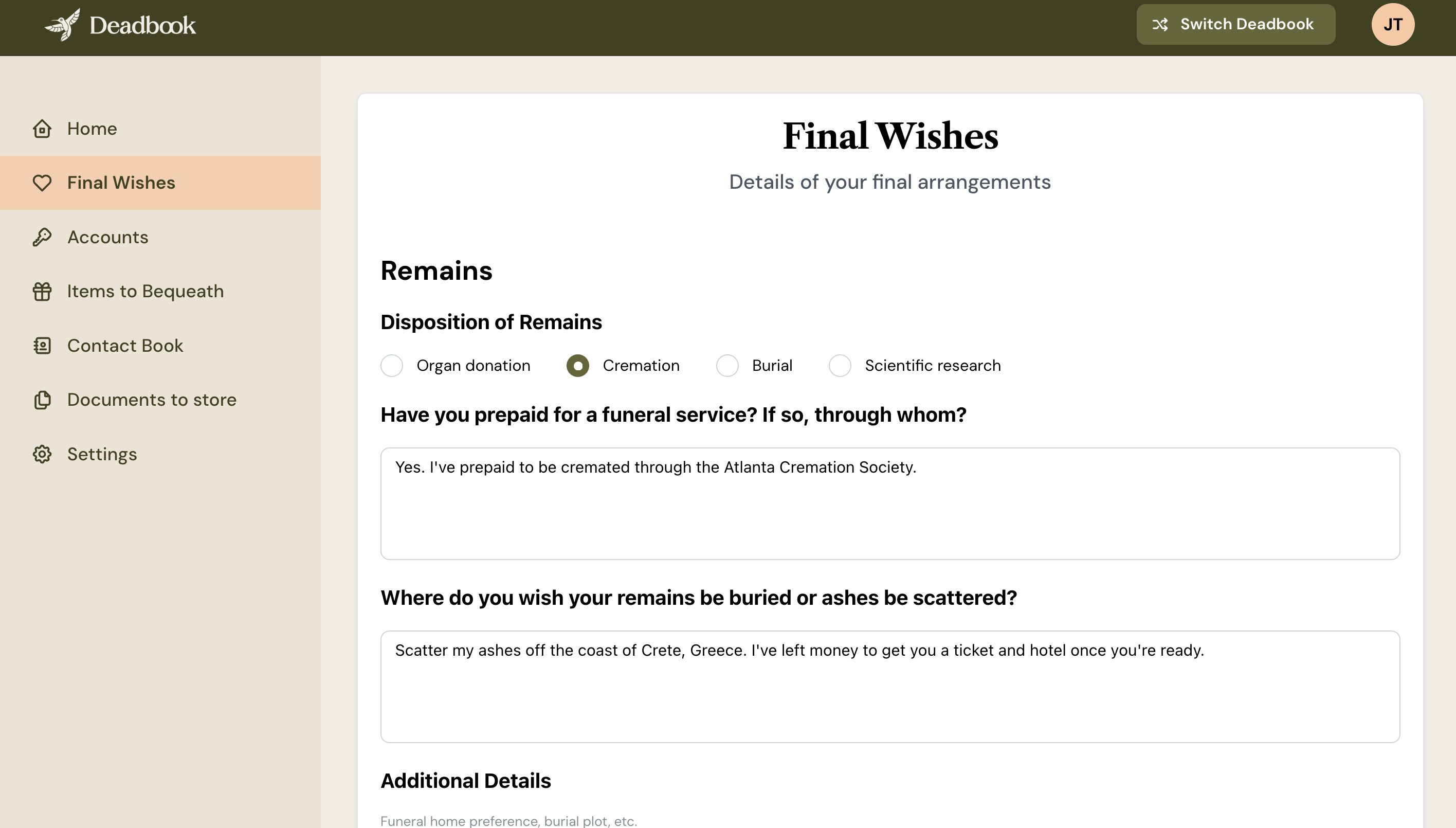 The company, which took its name from Tripp’s mother’s own deadbook, initially launched as a physical product brand with a book that could be filled out by those organizing their affairs. But they kept getting one big resounding piece of feedback: People wanted a digital deadbook.