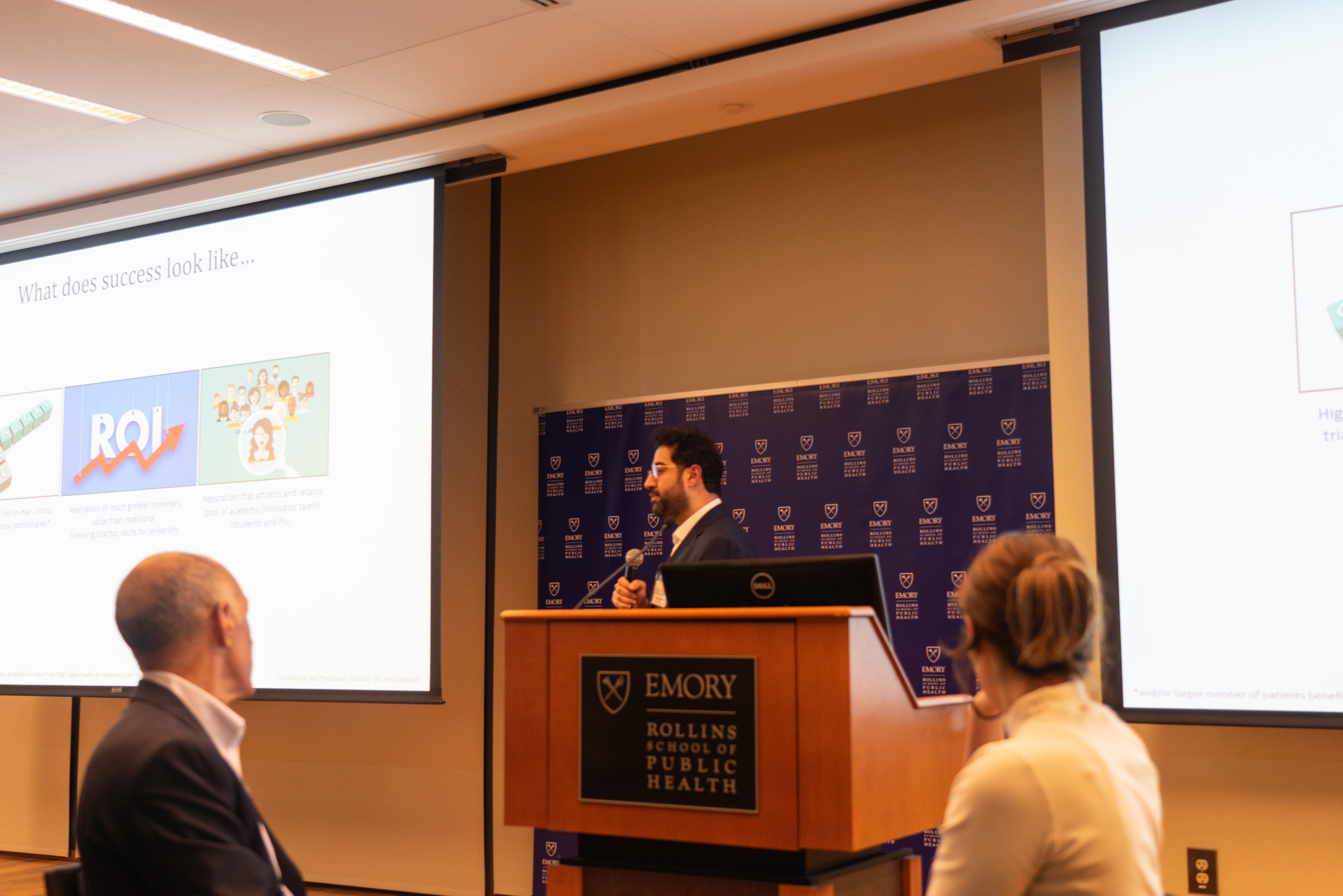 Students come not only from inside Emory, but also graduate and professional schools at Georgia Tech and Georgia State. The club typically has around 25 students participate in consulting projects each semester. The program, which is funded by Dean Lisa Tedesco at Emory’s Laney Graduate School, actively partners with Emory’s Office of Technology Transfer (OTT) to help connect students with new STEM ventures. To date, most of the club’s consulting clients have primarily been Emory and Georgia Tech faculty-run startups. The club has been helping those companies figure out their business model, their direct competitors, and who their target customers should be. Students present their consulting project at an end-of-the-semester gala. Emory-based startups present at this past December’s gala included: