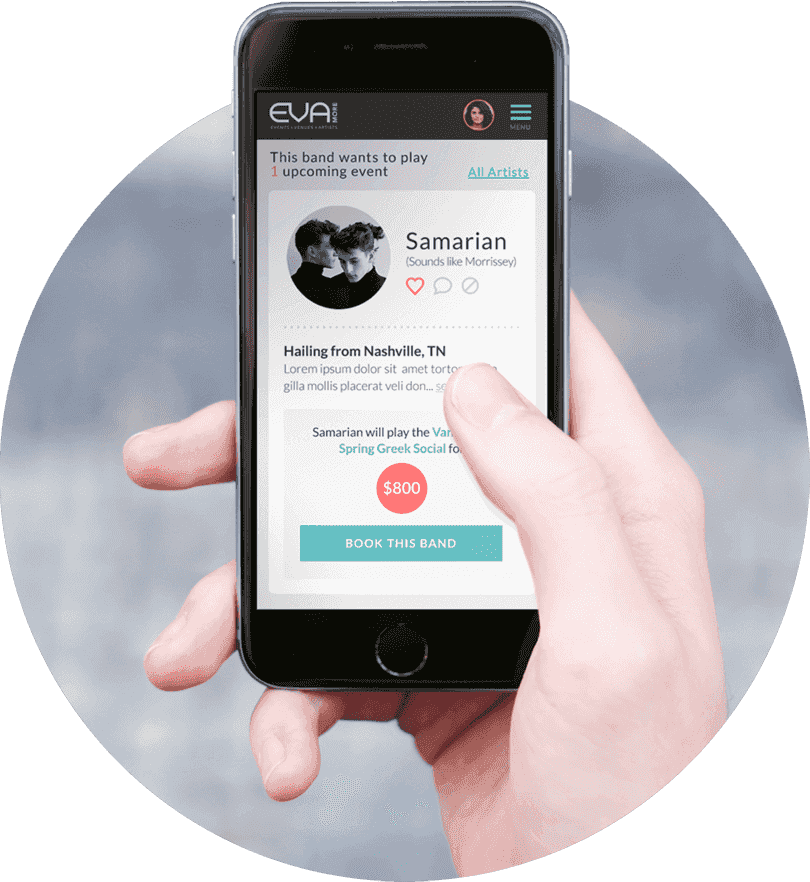 Currently, EVAmore charges the event planner a 10 percent service fee and takes 10 percent from the artist's fee (similar to an agent fee) to generate revenue. The artists, which include 100+ acts from across the Southeast and Midwest, do not have to pay to be listed after they are accepted to the platform.