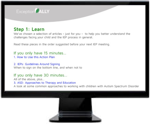 So our insight at ExceptionALLY was can we build a technology that can create a more collaborative environment for both the parent and the school? One, we need to provide parents the most relevant information for them and their child's situation so that they can be informed members and an equal part of this team, if you will, and at the same time, provide a tool that helps them focus in a situation that can also be intimidating and emotional.What kind of resources are included in the action plan provided through ExceptionALLY?