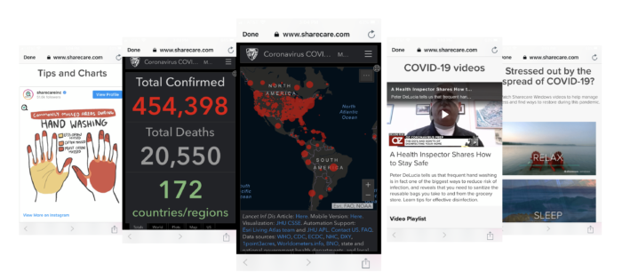 Registered users can also access Sharecare’s COVID-19 content directly from the Sharecare app, which provides them timely event cards and notifications alerting them to up-to-the-minute COVID-19 news. The app also makes it easier for people to connect to personalized information, evidence-based programs, benefits, community resources and health services they need to feel safe as the crisis continues.