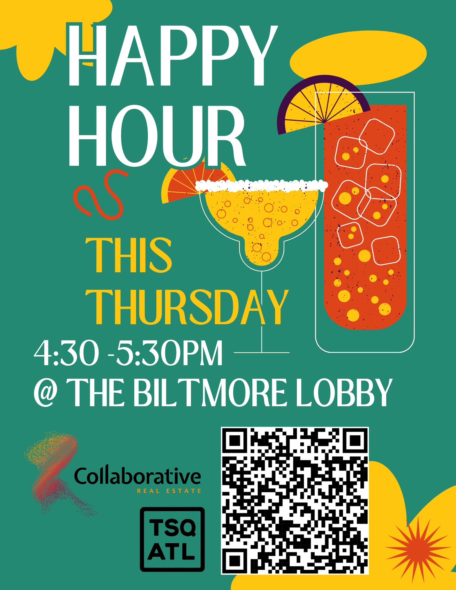 Happy hour in the Biltmore Lobby. Network with Biltmore tenants and other citizens of Tech Square! Enjoy a nice beverage and meet the relationship managers from Collaborative Real Estate. Register here!