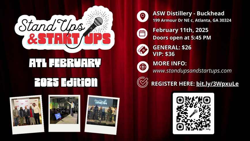 Get ready for a night of unstoppable laughter, unforgettable connections, and electric energy as Standups & Startups takes over ASW Distillery! This isn’t your average networking event—it’s where ATL’s sharpest minds meet the city’s funniest comics for a night you’ll be talking about long after the last punchline lands. Register here.