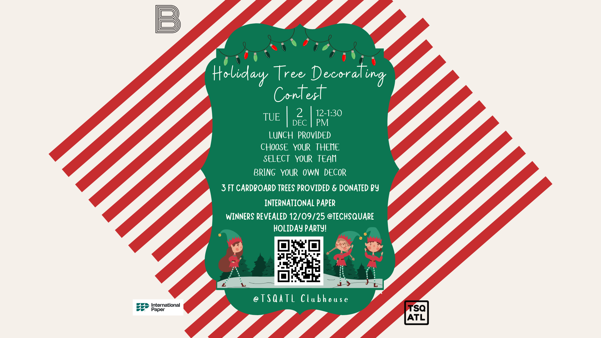 Choose your theme and bring your own decor. Select your team and RSVP individually! 3 ft cardboard trees provided by Int’l Paper and tools provided by TSQATL. Prizes will be announced at the Tech Square Holiday Party, 12/09. Sign up here!