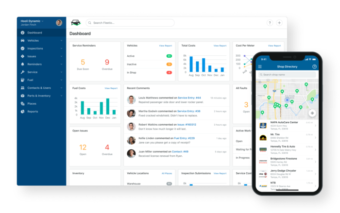 Companies can also manage all vehicles' operations, from location history, total cost of ownership, VIN-based maintenance schedules, vehicle assignments for employees, and fuel management.