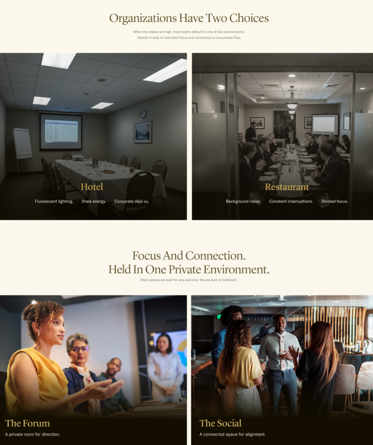 “Organizations are already spending this money — they’re just spending it inefficiently across multiple venues. We built something that keeps it all in one private, intentional space. Forum and Social combines two spaces in one, where decisions and connection can be made in the same space,” says Forum & Social’s founder Drew Clark.