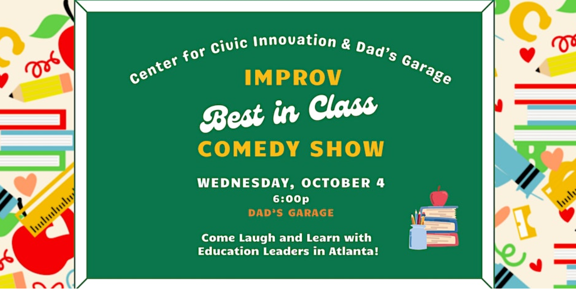 The Center for Civic Innovation is bringing back its annual improv comedy show on Wednesday, October 4 at 6:00p at Dad’s Garage! The comedy show is a night of laughter, games, and celebration. The evening will feature professional improvisers, and also… Atlanta community leaders as special guests! CCI’s comedy show is a fundraiser to support its organization’s civic engagement efforts.