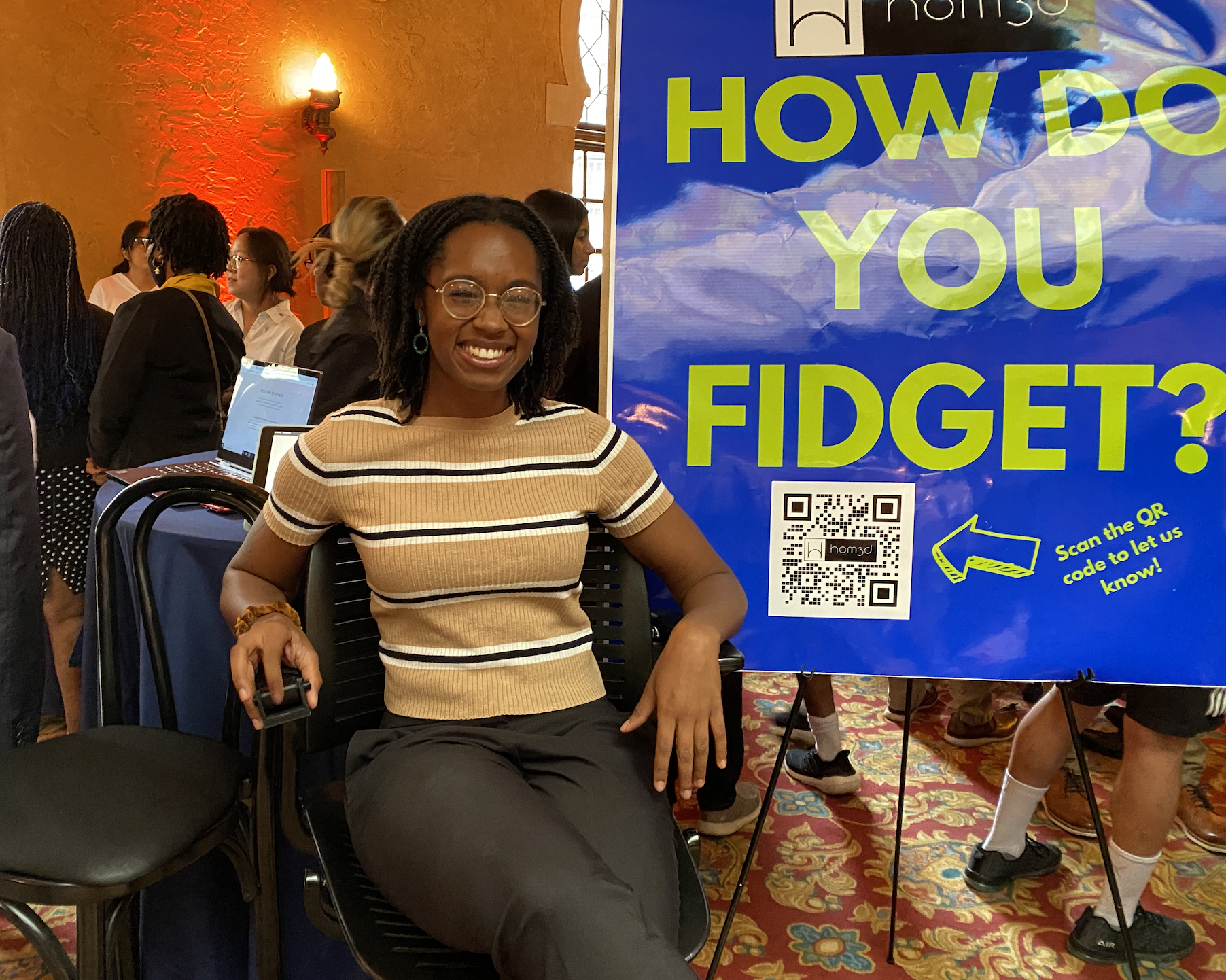 We took a spin around the ballroom for Demo Day to meet the up-and-coming founders. Some students are tackling real-world problems they've faced as college students, like Nadia Moore with HOM3D. She’s on a mission to build furniture that promotes focus, and she’s starting with a better type of fidget spinner that connects directly to a desk and can help students stay alert. She told Hypepotamus that the opportunity to solve a real-world problem is something that attracted her to the Create-X program earlier this summer.