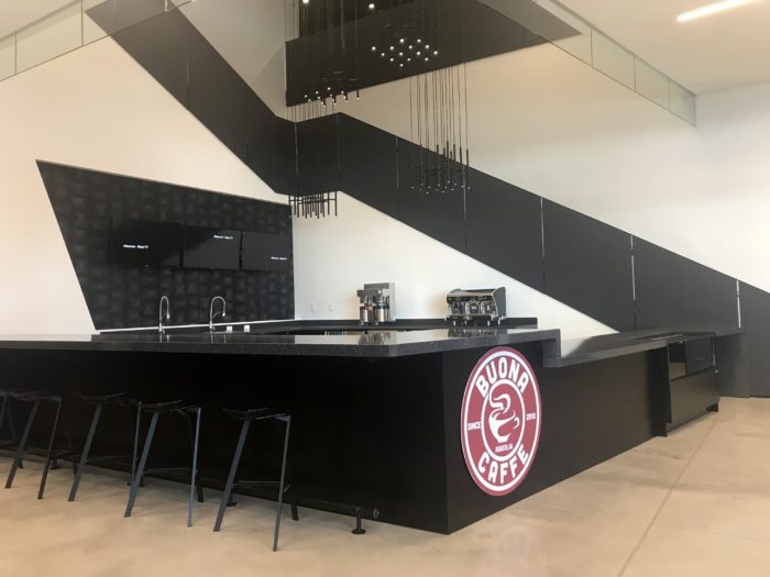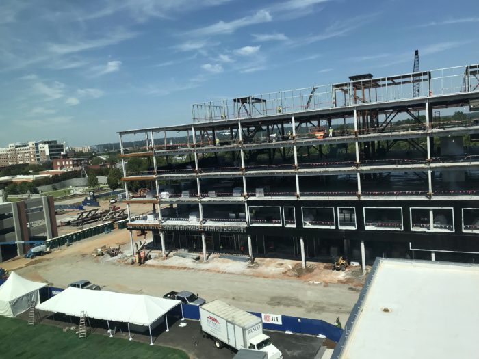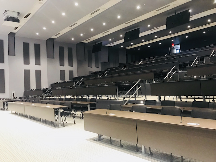 The completed building is equipped with a state-of-the-art auditorium that sits 380+ people, a lobby coffee shop, a data center on every floor, communal break rooms, classroom space, multiple conference rooms, an event-friendly rooftop, and a hackathon-friendly space called the 'Virtual Room' that features removable walls.