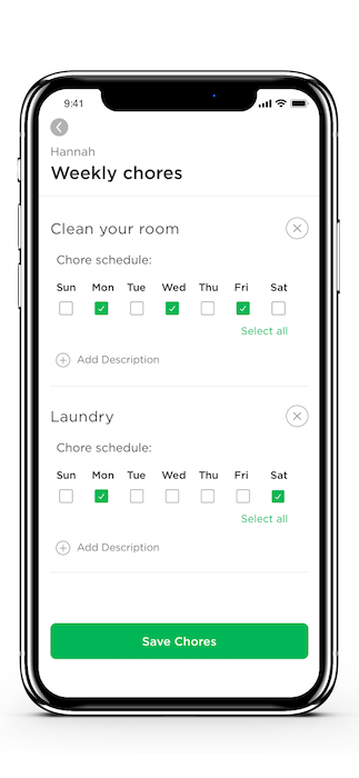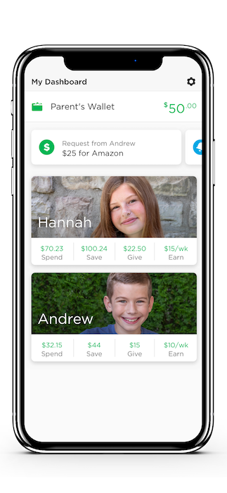 Greenlight’s branded debit card and accompanying app allows parents to directly transfer allowance money to kids, similarly to a Venmo transaction, and set controls on how much and what they can spend. Kids can earn money through a chores feature, as well as “parent-paid interest,” where parents set an interest rate on any savings their kids collect.