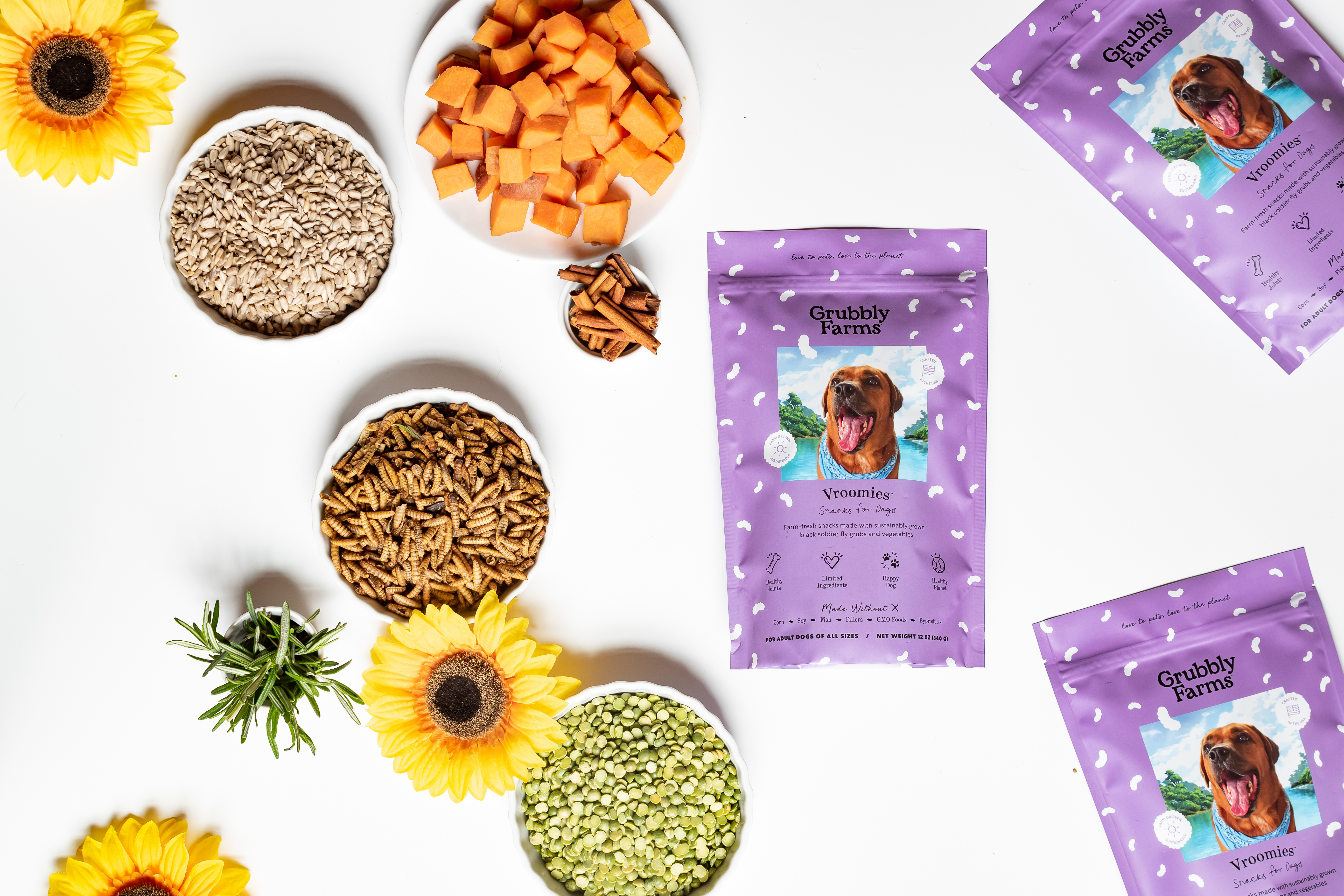 Grubbly is calling its hypoallergenic product line for dogs Vroomies, a fun name to showcase that the food promotes healthy joints and encourages an active lifestyle. Instead of relying on animal protein from unsustainable sources, Vroomies are made with farm-fresh vegetables and grub protein.