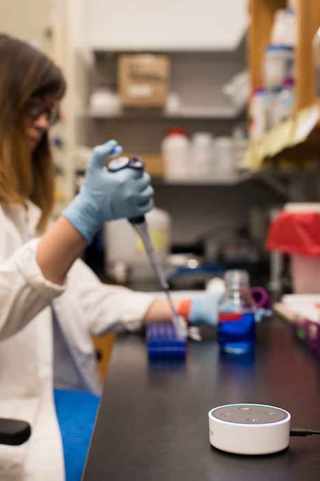 “James actually came to me and asked, what would you think about making a digital lab assistant, something that runs off these Alexa devices but helps out in the lab?” says DeLacy. She was open to the idea and they began to nail down how the tool would work.