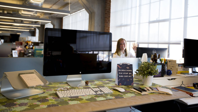 I think we’re really good at this. We have an employee integration team of four people that are focused on just that, integrating employees that are new or are changing jobs within the organization. For new employees one of the most fun things we do is, obviously in a digital age you get a job offer via e-mail, but we also send new hires a package welcoming them to the company. It's got MailChimp swag like a really fun postcard that says "Will you be my co-worker?" It's just an exciting thing, a physical thing that they get in the mail that makes it feel real.