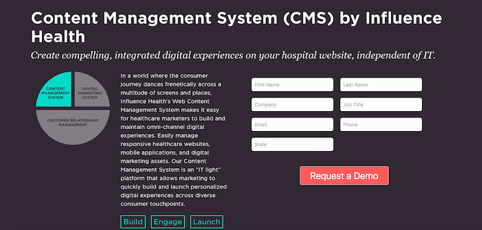 Influence Health is addressing a market made necessary by the growing trend of healthcare consumerization. They offer a better way for providers to market their services to customers (potential or current patients) by providing better targeting, segmentation, marketing content and campaigns.