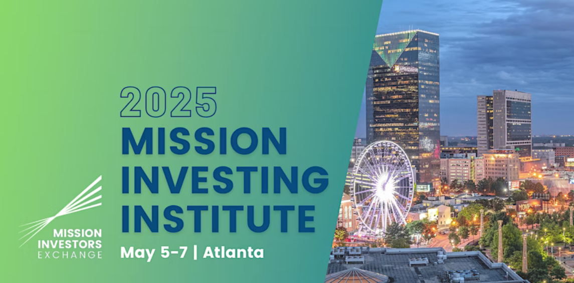 Mission Investors Exchange (MIE) is pleased to announce the 2025 Mission Investing Institute. As MIE’s signature introductory learning program, our Institute is designed to help philanthropy professionals get started in impact investing or advance their practice. The Institute will take place from May 5-7, 2025, in Atlanta. Register here.