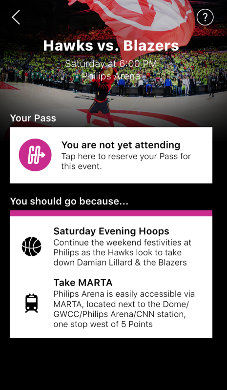 INWEGO is a subscription-fee based app that offers tickets to live events, which users can see a week in advance and book all the way up to the end of the event. Created by Atlanta-based Experience (part of the Cox Enterprises family of companies), INWEGO costs users a flat $29 a month for access to events including Braves, WNBA Dream, Hawks, Falcons, and all Georgia Tech games, NHRA races at the Atlanta Dragway, and PGA Tour events.