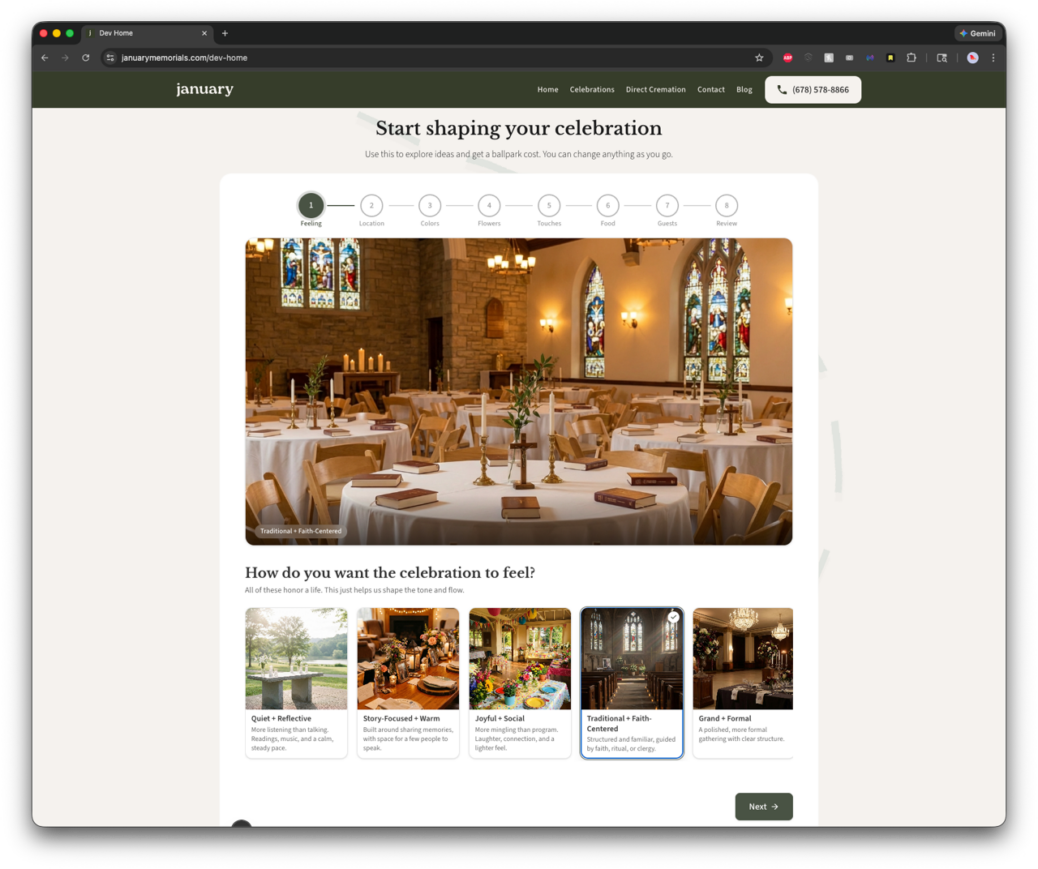 This week, January Memorials took that mission a step further with the launch of its AI-powered planning tool. With a conversational, quiz-style format, the platform lets people walk through their preferences and begin to visualize exactly what a meaningful Celebration of Life could look like.