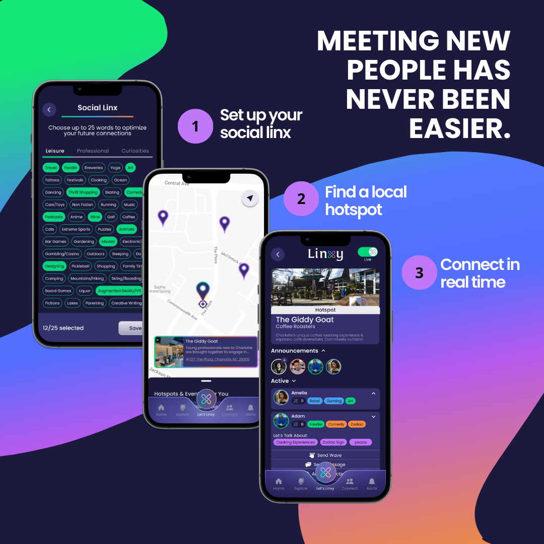 Unlike a lot of app-based platforms, Linxy is designed to get you out of the digital world and focused on building real-world connections. The location-based social connection and experience app lets users share information on a dashboard that makes it easier for people at the same event to connect. Linxy has invented its own social connection system called the Social Linx. This feature allows users to design the interests, passions, hot topics, and professionals they'd like to connect with precision, with fellow event attendees.