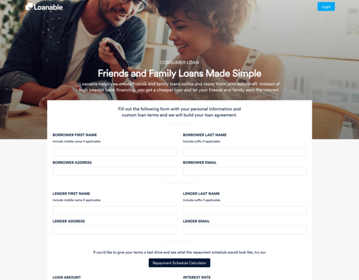 "We've distilled this process that can be unwieldy, where the terms are often unclear or maybe someone has a change of heart, and created a pretty clear process," says Worthy. "We've distilled that entire loan agreement down to about six different inputs. You just need to know your loan amount, your interest rate, and how long you want the loan to be. We give you a calculator to set your own rates."