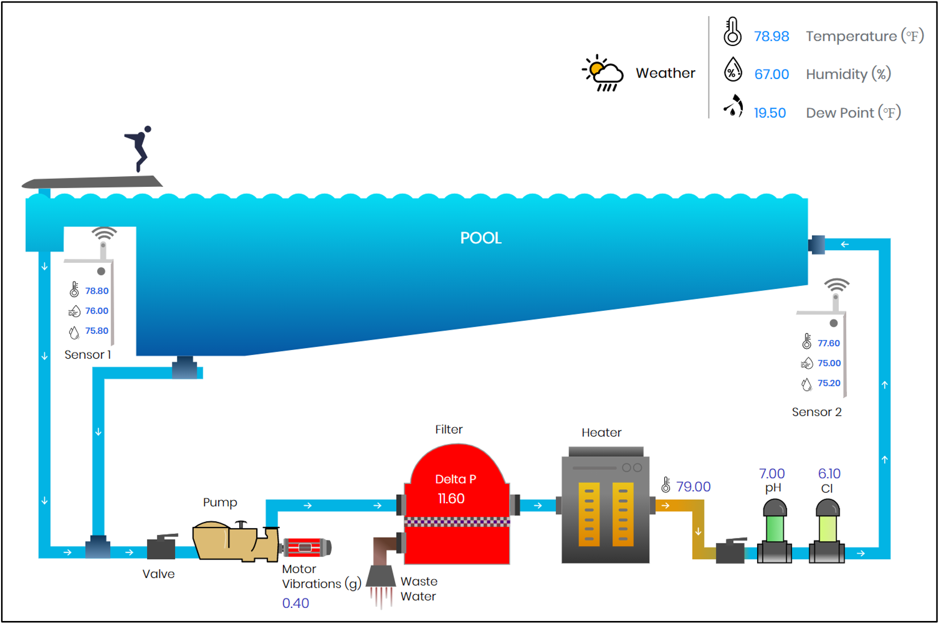 Their first client was a community pool, where they implemented operator remote access and control. By digitalizing the pool's assets, operators were alerted automatically of equipment outages and were able to help eliminate fog over the pool during winter months through additional operational enhancements.