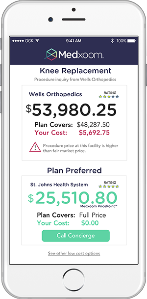 Medxoom's healthcare marketplace app simplifies pricing for medical procedures. It is provided as a company benefit to employees, who receive access to the app via their HR team.