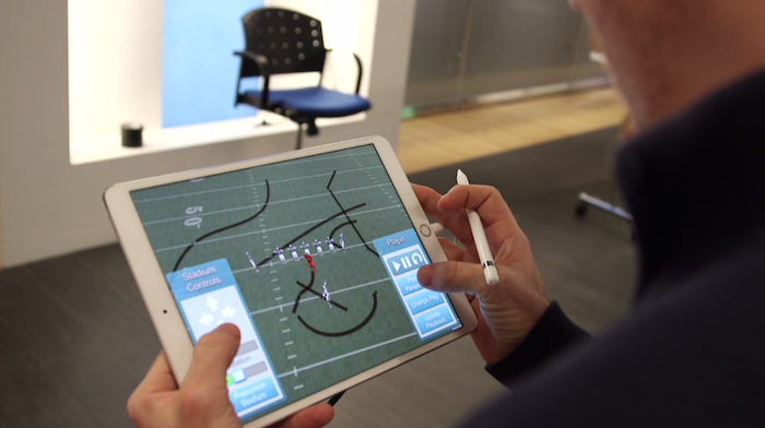 The app they developed allows the coaches to draw and edit their plays on an iPad. Once they have the final play, it’s visualized on the tablet with moving player avatars.