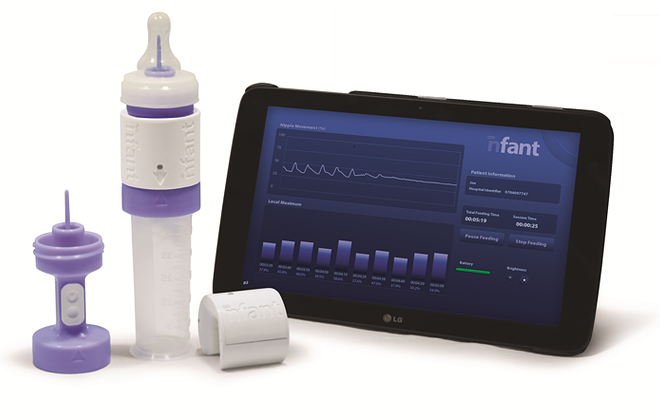Often, what keeps a baby in the hospital is feeding issues — 70 percent of preemies have trouble feeding. Atlanta-based medical device company nfant, recently named a TAG Top 10 Most Innovative Company in Georgia, is tackling this problem with a high-tech, IoT-connected sensor that attaches to a baby bottle and can measure tongue motion on the nipple.