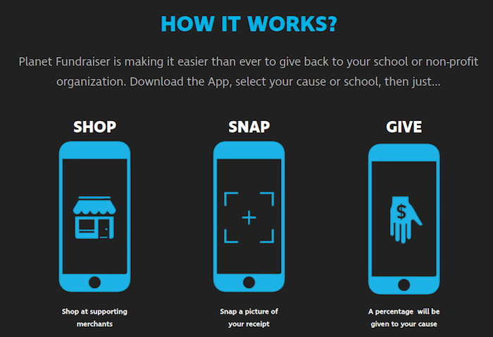 Using Planet Fundraiser’s app, customers can shop at supporting merchants, snap a picture of their receipt, and a percentage of each purchase will be given to the their charity of choice.