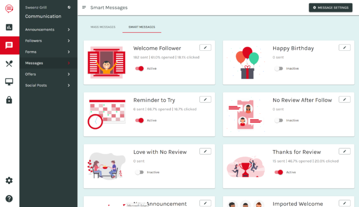 The platform also automates marketing, by sending emails to past and prospective diners when they interact with the menu in some way. It offers reminders with special offer templates for upcoming holidays in case the restaurant is running short on time.