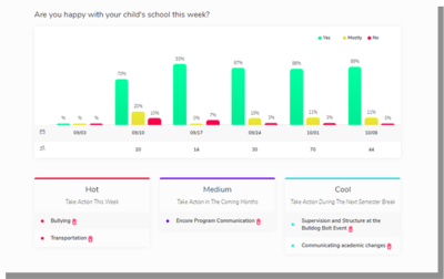 Possip, a hybrid term created from a combination of the words "gossip" and "positive," uses text-messages and weekly emails to parents as a way to gather thoughts, feedback, ideas and praise, in a variety of languages. The platform then captures and uses data analytics, human and technical intelligence, and historical insights to organize parental feedback into actionable reports, arranged in five buckets: academics, staff operations, teachers, classroom culture and school culture.