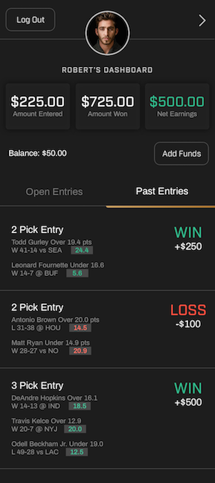 If the user gets all their predictions correct, they win multiples — up to $1000 — depending how many players they selected. The prize is sent straight to the user’s account, from which they can transfer directly to their bank account.